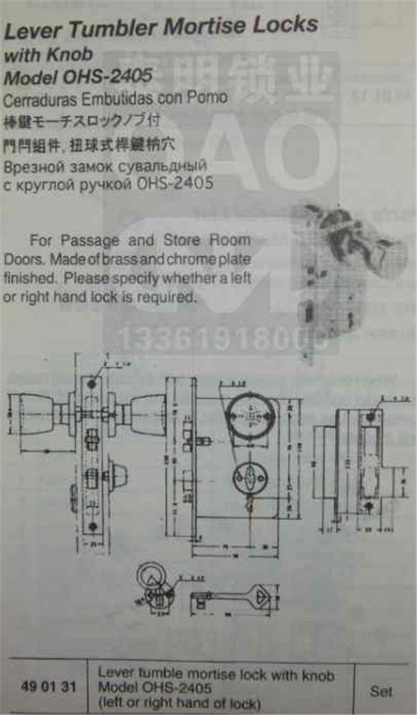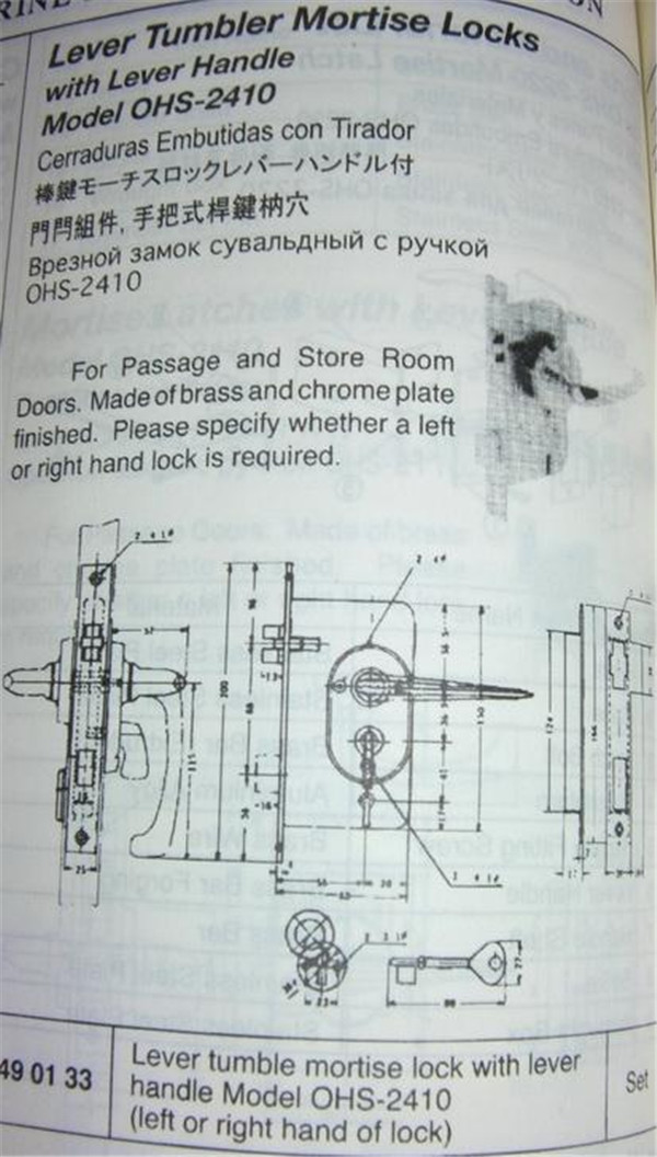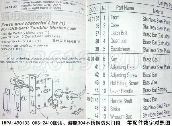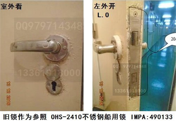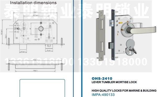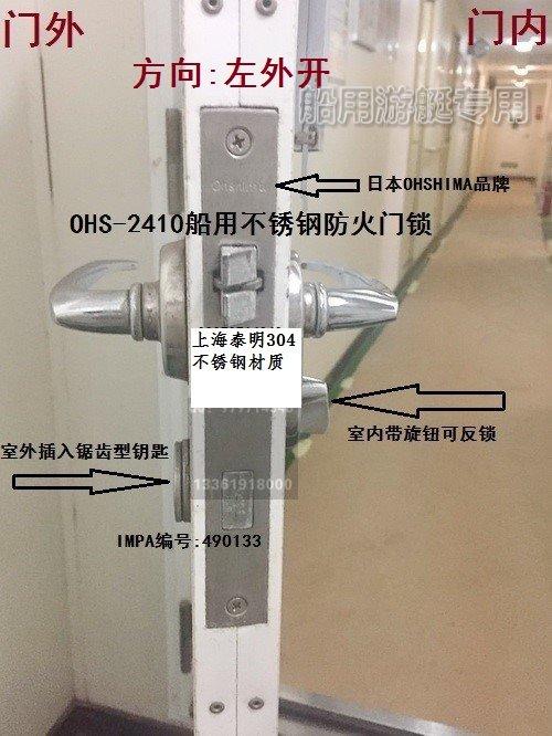 本鎖型号爲OHS-2410,OHS-2405船用遊艇不鏽鋼304防火門鎖.IMPA船用物料手冊編号490133,490131.産品材質,尺寸,規格同日本,韓國(guó)原鎖完全一緻,同IMPA物料手冊尺寸完全一緻.