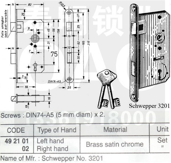本鎖同時(shí)可替代德國(guó)公司210MM總長(cháng)的NO.3201型船用防火門鎖安裝.安裝尺寸一緻.IMPA編号492101 492102