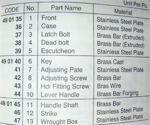 本鎖的各個零部件數字對(duì)照表見下圖 部分零部件可單獨購買
