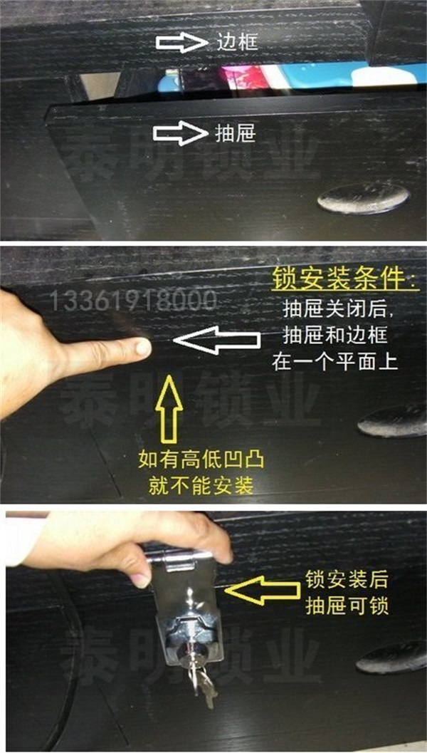 注明:本鎖并不是所有家具都(dōu)能(néng)安裝.請仔細查看本鎖的安裝條件,根據自己的家具來選擇.