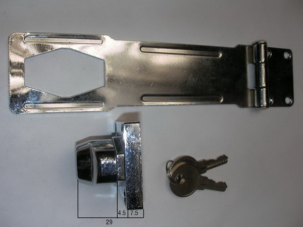 本産品爲最新款"外裝式+搭扣型”雙開(kāi)門,單開(kāi)門櫥櫃櫥門鎖,箱包鎖,箱扣鎖,工具箱鎖.規格分别爲2.5寸,3寸,3.5寸,4寸,4.5寸,6寸共6種(zhǒng)尺寸規格.适合各類大小的單開(kāi),雙開(kāi)門櫥櫃,櫥門,箱櫃,工具箱等家具使用,本鎖爲外裝結構,用搭扣扣住旋轉鎖頭即可鎖止,打開(kāi)需要鑰匙,本鎖具有安裝簡單,使用方便,外形美觀的特點,适合各類大小的單開(kāi),雙開(kāi)門櫥櫃,櫥門,箱櫃,工具箱,箱櫃,盒子,工具箱,展示箱等家具使用.本鎖的箱扣材料爲鋼,鎖體材料爲鋅合金,每把鎖配2把全銅鍍鎳鑰匙.鎖配螺絲.整套産品電鍍亮鉻,防腐蝕性強.該鎖的安裝步驟爲:首先將(jiāng)固定闆固定在家具的一端,然後(hòu)把方形鎖體4眼固定在家具另一端即可.箱扣卡入鎖體後(hòu),將(jiāng)鎖頭旋轉90度即鎖止卡死.開(kāi)啓時(shí)鑰匙插入帶動鎖體旋轉90度,箱扣即可分離.産品長(cháng)期出口歐洲,美國(guó),韓國(guó),中東,菲律賓,非洲等地區.具有安裝簡單,使用方便的特點!
