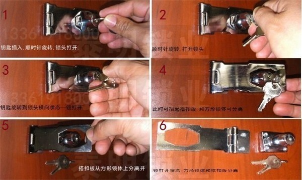 産品安裝和使用示意圖:本鎖爲外裝鎖,不需在家具打孔.隻需安裝幾個螺絲即可完成(chéng)安裝.具有安裝簡單,使用方便,外形美觀的特點