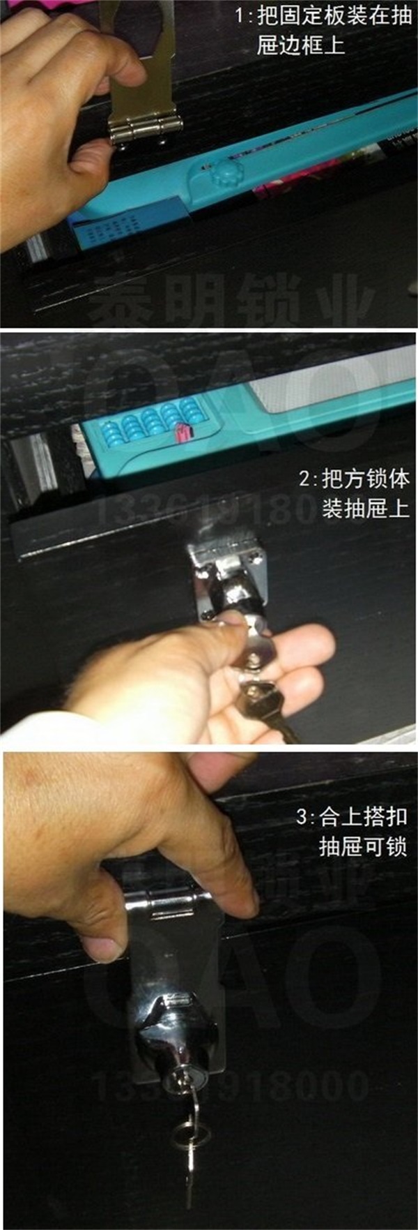 注明:本鎖并不是所有家具都(dōu)能(néng)安裝.請仔細查看本鎖的安裝條件,根據自己的家具來選擇.