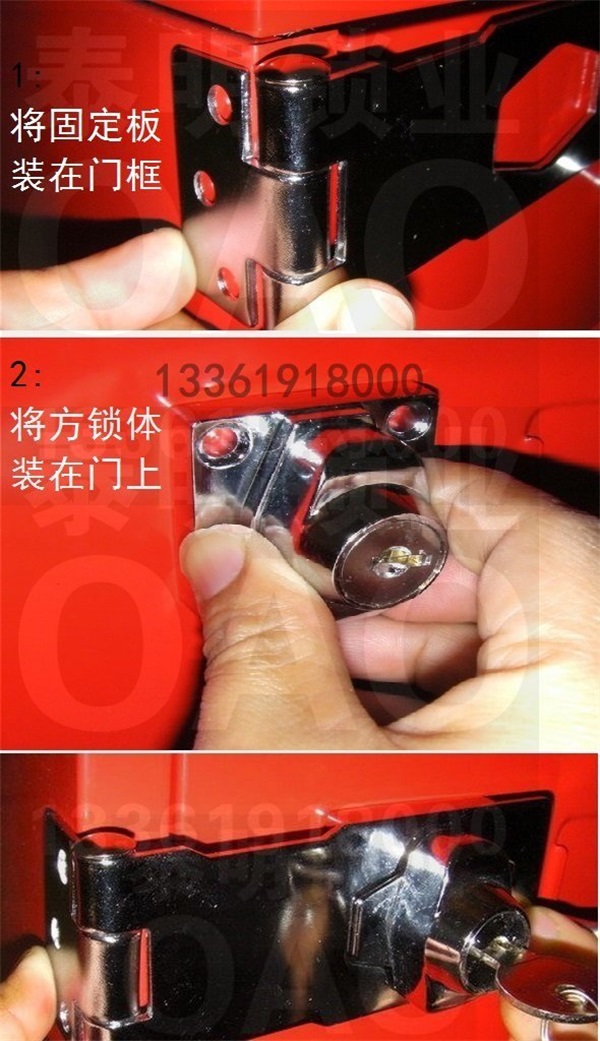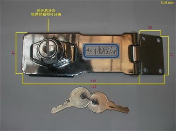 本産品爲最新款"外裝式+搭扣型”雙開(kāi)門,單開(kāi)門櫥櫃櫥門鎖,箱包鎖,箱扣鎖,工具箱鎖.規格分别爲2.5寸,3寸,3.5寸,4寸,4.5寸,6寸共6種(zhǒng)尺寸規格.适合各類大小的單開(kāi),雙開(kāi)門櫥櫃,櫥門,箱櫃,工具箱等家具使用,本鎖爲外裝結構,用搭扣扣住旋轉鎖頭即可鎖止,打開(kāi)需要鑰匙,本鎖具有安裝簡單,使用方便,外形美觀的特點,适合各類大小的單開(kāi),雙開(kāi)門櫥櫃,櫥門,箱櫃,工具箱,箱櫃,盒子,工具箱,展示箱等家具使用.本鎖的箱扣材料爲鋼,鎖體材料爲鋅合金,每把鎖配2把全銅鍍鎳鑰匙.鎖配螺絲.整套産品電鍍亮鉻,防腐蝕性強.該鎖的安裝步驟爲:首先將(jiāng)固定闆固定在家具的一端,然後(hòu)把方形鎖體4眼固定在家具另一端即可.箱扣卡入鎖體後(hòu),將(jiāng)鎖頭旋轉90度即鎖止卡死.開(kāi)啓時(shí)鑰匙插入帶動鎖體旋轉90度,箱扣即可分離.産品長(cháng)期出口歐洲,美國(guó),韓國(guó),中東,菲律賓,非洲等地區.具有安裝簡單,使用方便的特點!