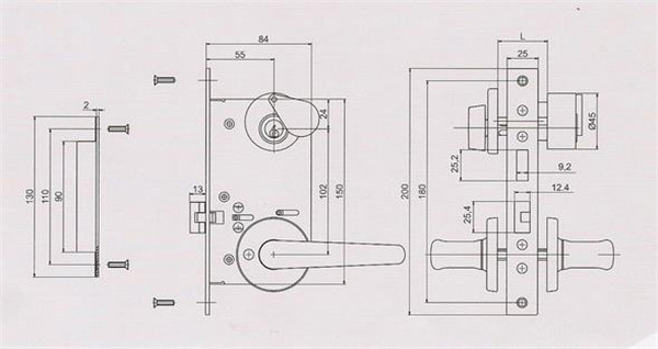 本鎖爲全304不鏽鋼材質(标配螺絲也爲304不鏽鋼),鎖頭全銅,每個鎖頭包含3把全銅鑰匙.适合38mm-45mm的各類木質,鋼質防火門,也可定制用于加厚防火門使用.