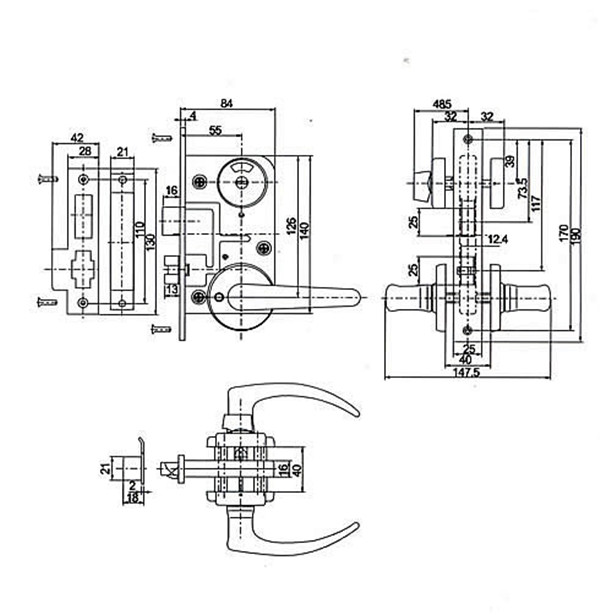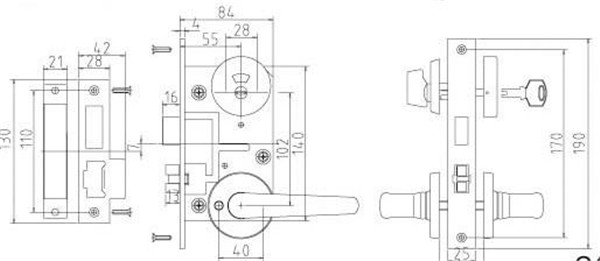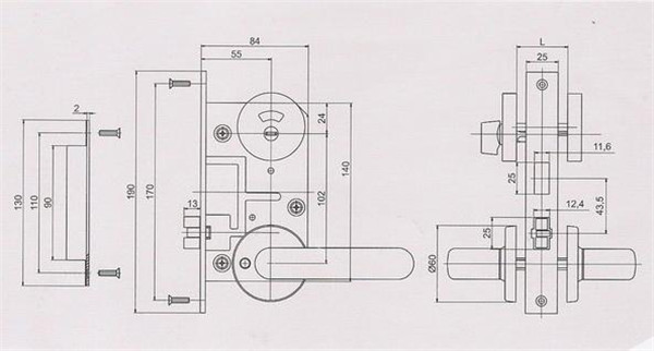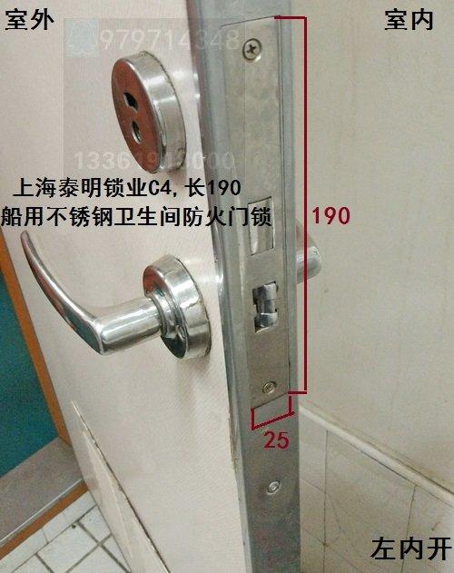 總長(cháng)190mm衛生間鎖安裝後(hòu)示意圖