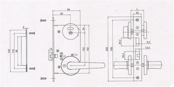 總長(cháng)200mm衛生間鎖安裝後(hòu)示意圖