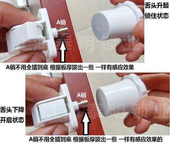 把A銷拔出一些延長(cháng)感應距離,最大長(cháng)度15.7MM,可适合18MM闆厚(調節銷感應門外磁性鑰匙的距離範圍在2-3MM)