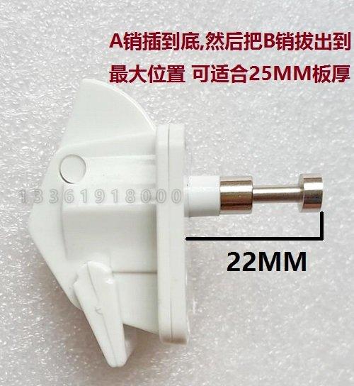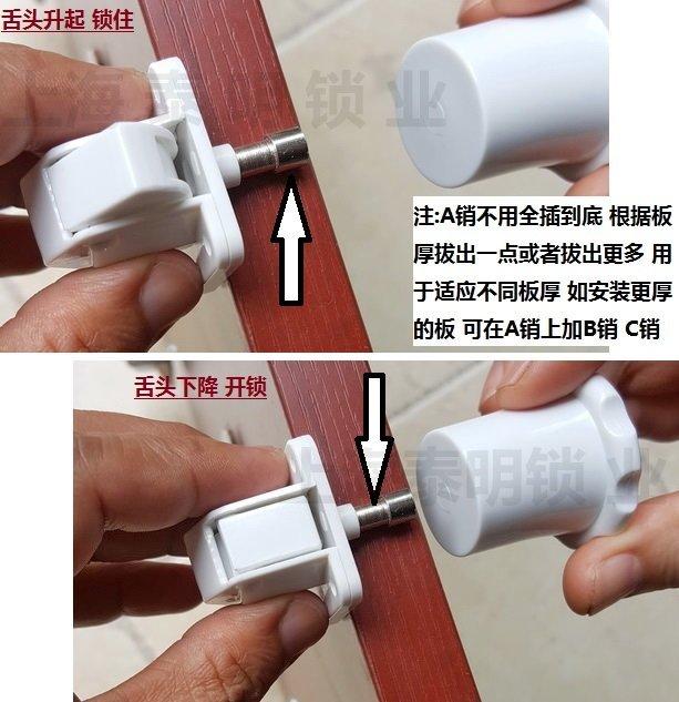 1)首先插入A銷,A銷爲活動銷,如闆厚在12MM可把A銷插到底即可,如闆厚在13-18MM之間可根據闆厚把A銷拔出一些來延長(cháng)感應距離,A銷拔出最大可适合18MM闆厚.下圖
