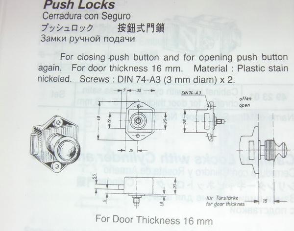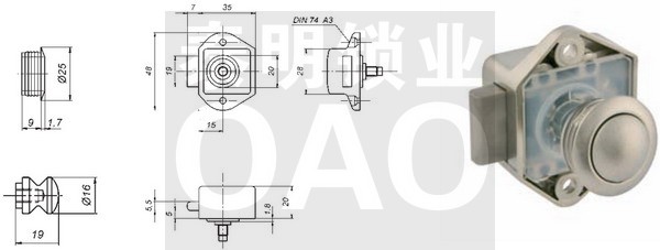本鎖根據德國(guó)Schwepper公司按鈕式門鎖(PUSH LOCKS)型NO7740.7741生産,船用IMPA物料編碼:492345 492346.本鎖有大小三種(zhǒng)尺寸按鈕套圈可選用,直徑Φ20的小号按鈕.長(cháng)方形鎖體,2眼固定.鎖體橫向(xiàng)總寬度48mm,鎖體總高度41mm.本鎖安裝需要開(kāi)孔Φ20和Φ26通過(guò)按鈕旋動螺紋調節,可适合15-27mm厚度的門闆.另有鋁合金材質小号按鈕可選擇.本鎖爲按鈕式門鎖,按下按鈕,鎖舌被(bèi)推高,達到鎖止狀态,且鎖上關閉後(hòu)與家具表面(miàn)爲平面(miàn),不凸起(qǐ),外形美觀.開(kāi)鎖隻需按下按鈕,鎖舌下降,拉動按鈕即可開(kāi)門,按鈕除了可用于開(kāi)關門,也可當拉手使用.按鈕及套圈表面(miàn)電鍍亞光鎳(咖啡金),适合各類家具配色.本鎖開(kāi)啓和關閉還(hái)帶有"嗒嗒"提示音,具有安裝簡單,使用方便,開(kāi)關靈活,外觀精美的特點,适合各類15-28MM厚船用,遊艇,房車,陸地家具的抽屜,櫥門,櫥櫃等家具使用