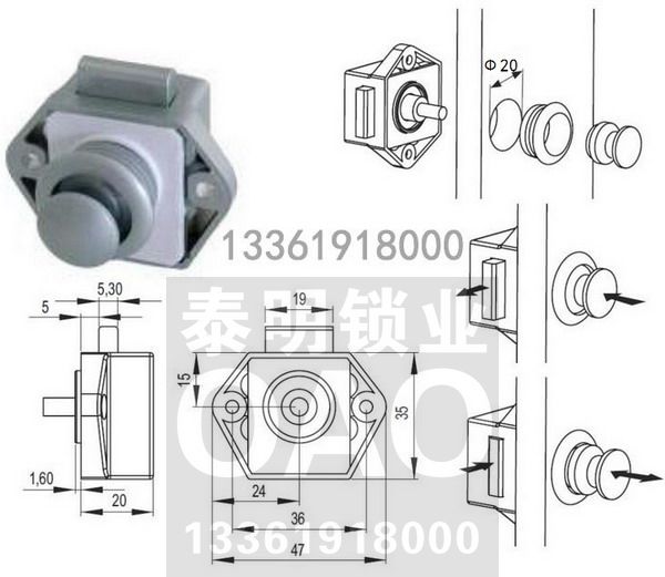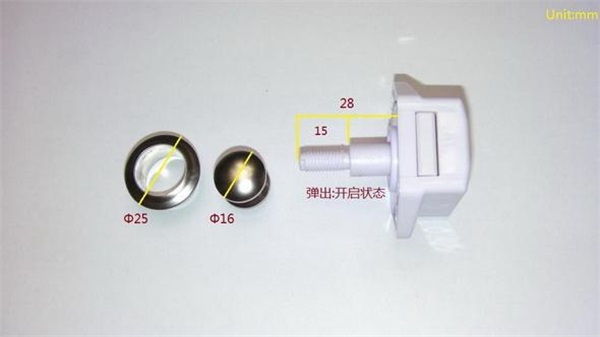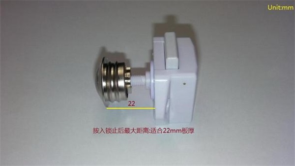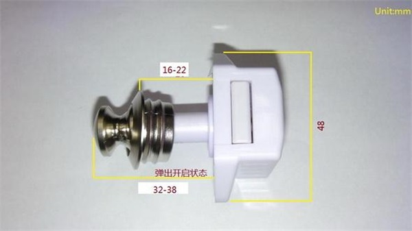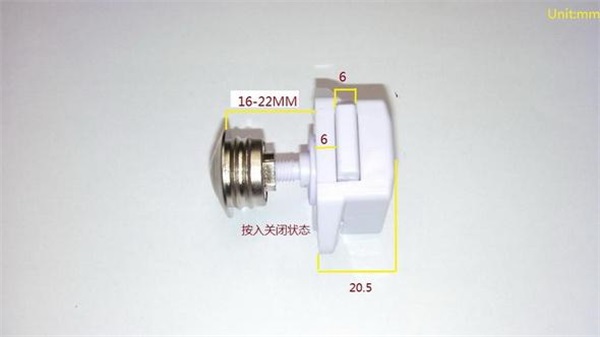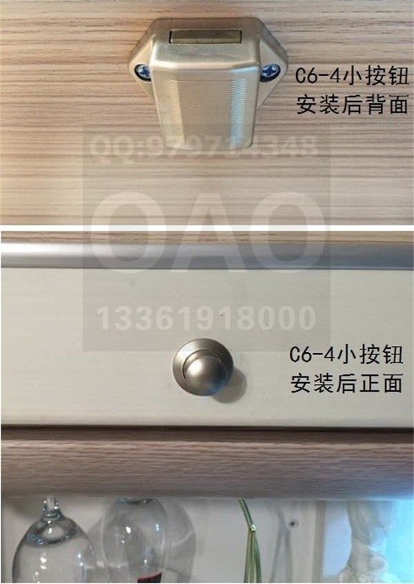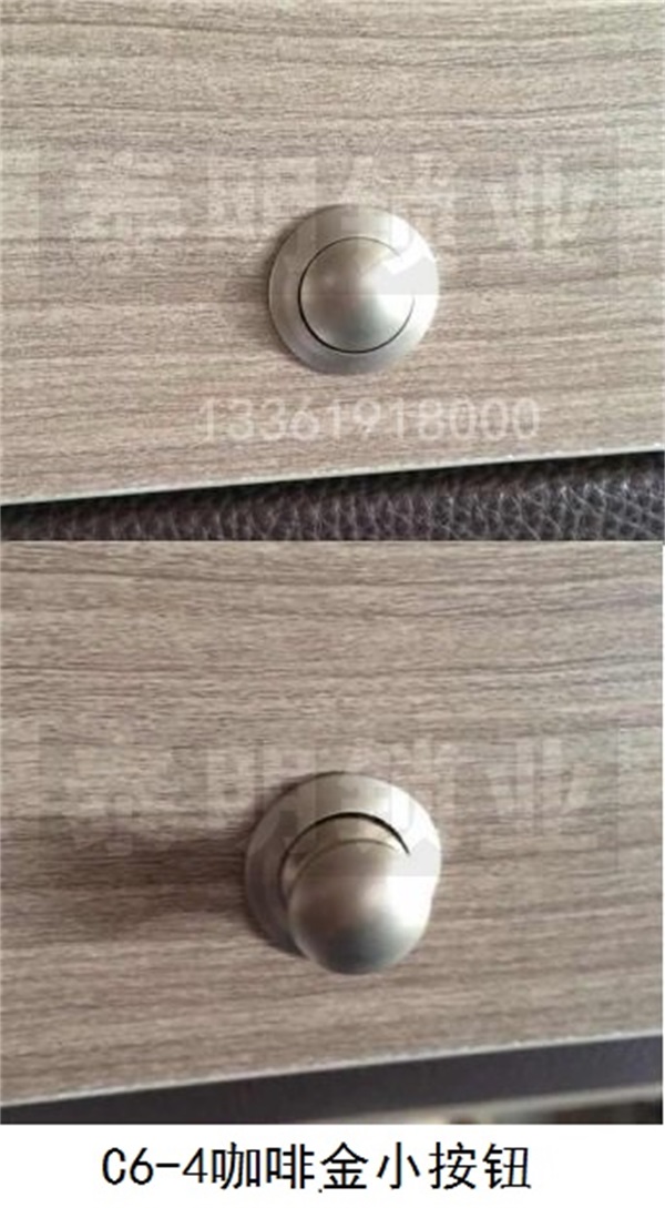 安裝關閉後(hòu)與家具表面(miàn)持平,不凸起(qǐ).按下按鈕即可鎖止關門,開(kāi)門隻需按下按鈕後(hòu)拉動按鈕開(kāi)啓.本鎖既帶鎖止功能(néng)同時(shí)也帶拉手功能(néng).開(kāi)啓和關閉帶有"嗒塔"提示音,具有安裝簡單,使用方便,開(kāi)關靈活,外觀精美的特點.本鎖開(kāi)孔有Φ20和Φ26二種(zhǒng),适合各類15-27MM闆厚船用,遊艇,房車,陸地家具的抽屜,櫥門,櫥櫃等家具使用