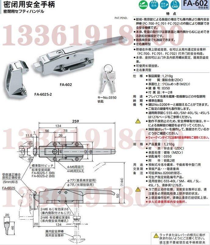 FA-602船用遊艇密閉型帶拉手安全庫門鎖,食品冷藏冰庫鎖,倉儲鎖(産品編号10220)